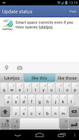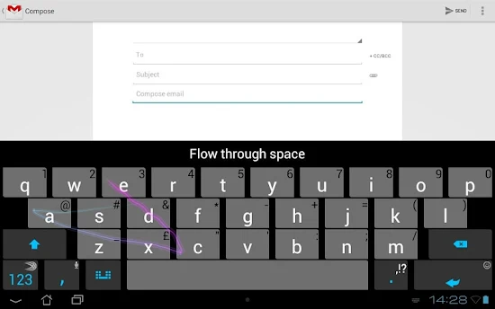 Switch seamlessly between tapping and gesture typing with our new SwiftKey Flow feature. It combines the mind-reading capabilities of SwiftKey with the speed of gliding your fingers across the screen. With ‘Flow Through Space’, you can also enter entire phrases without lifting your finger from the screen, simply by sliding to the space bar between words.